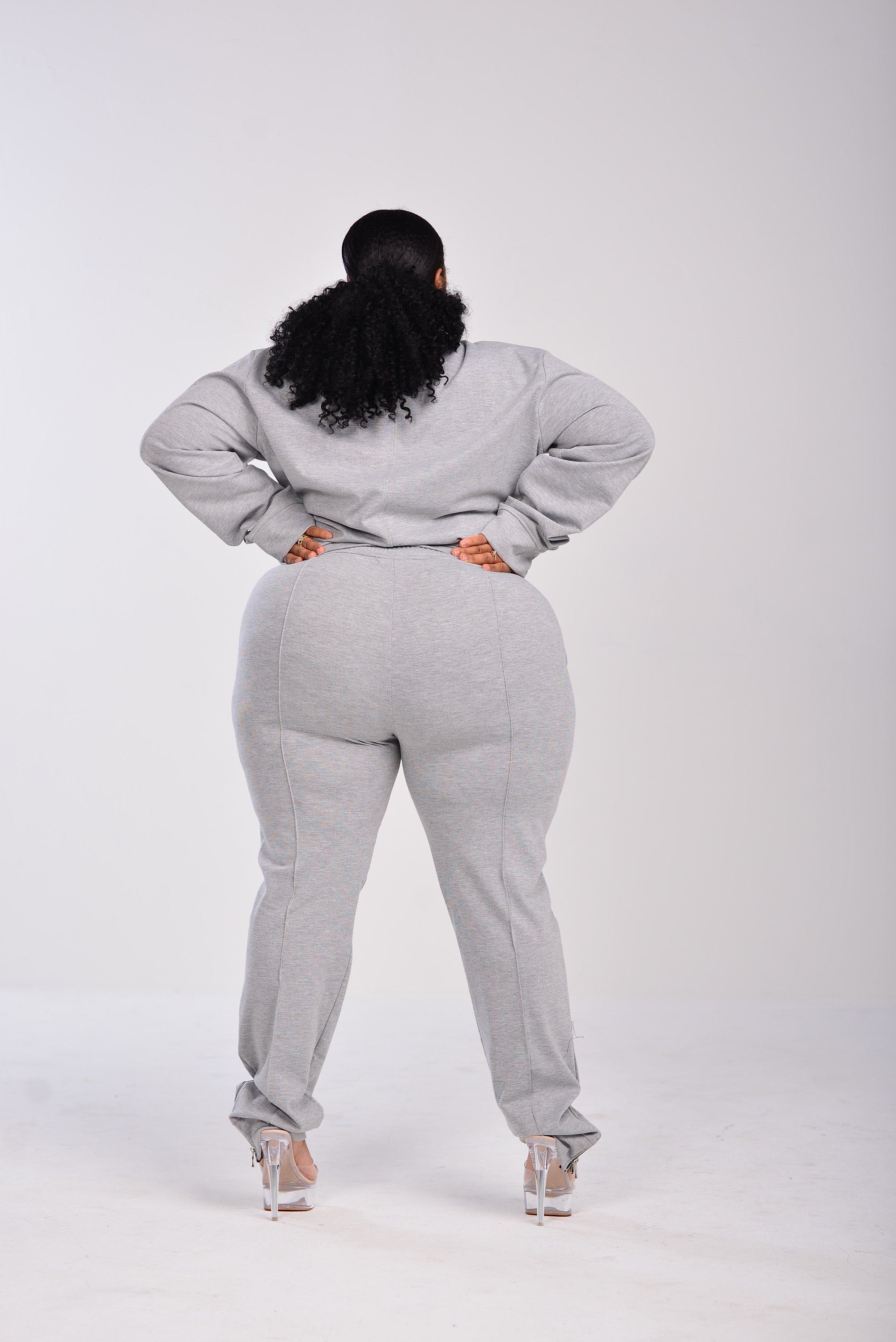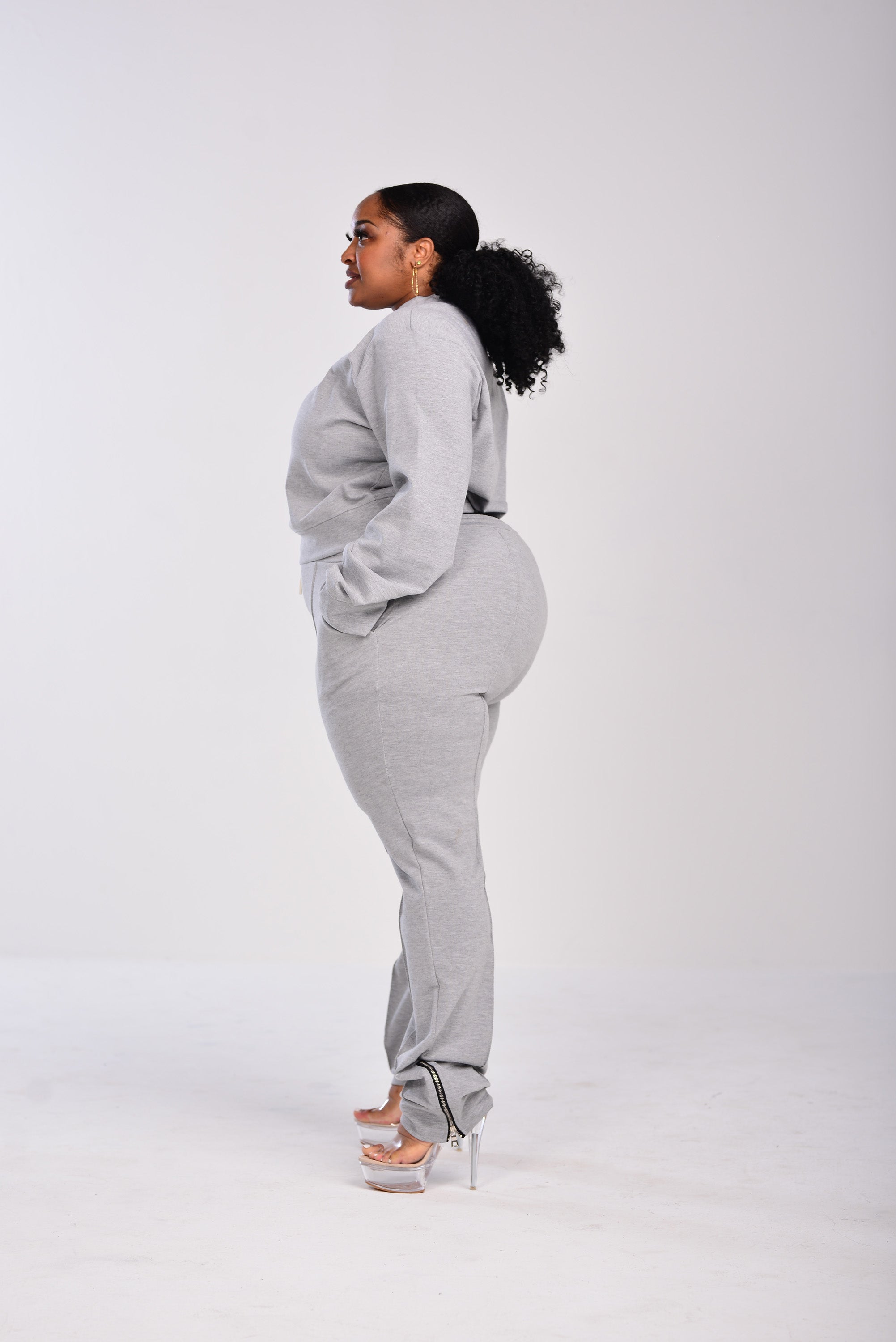 Fluffy Grey fit comfortable with a draw string that can be tightened and a stripper on each side of the pants which can be open.