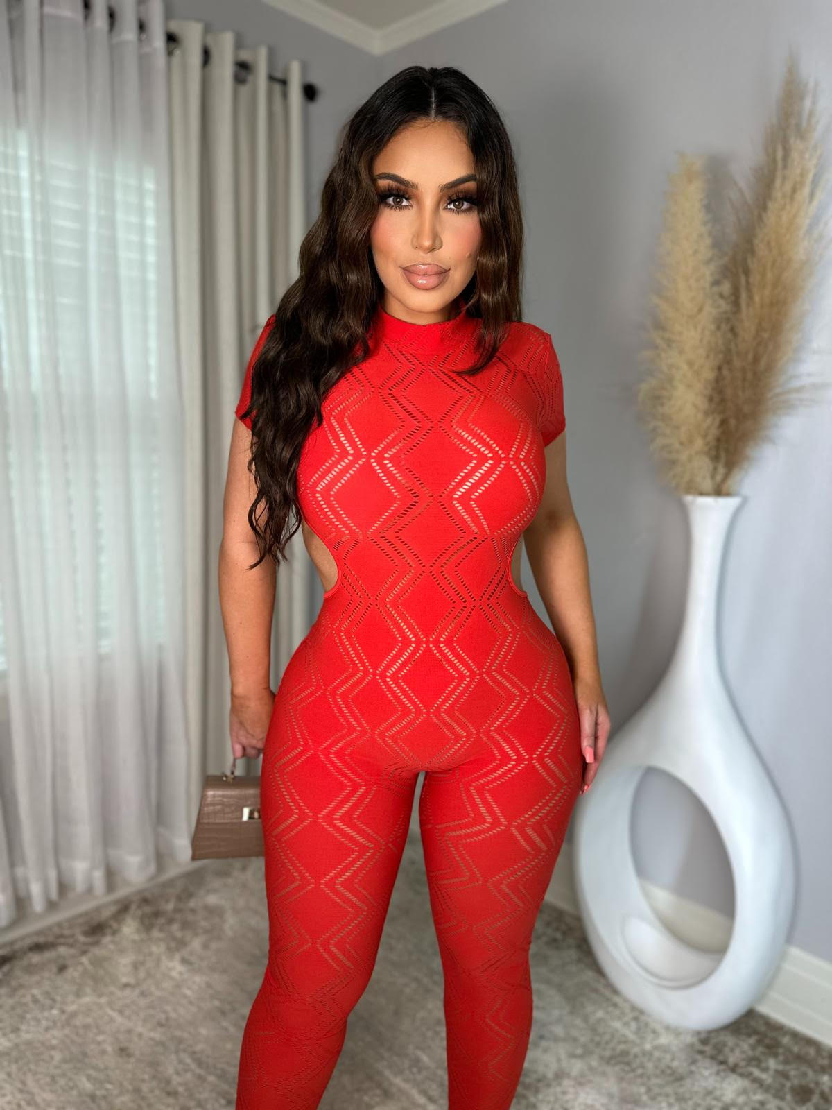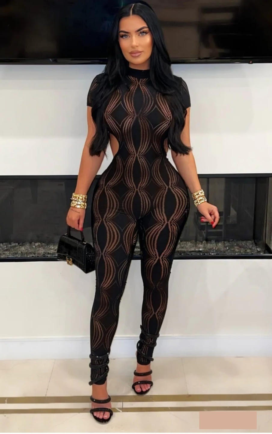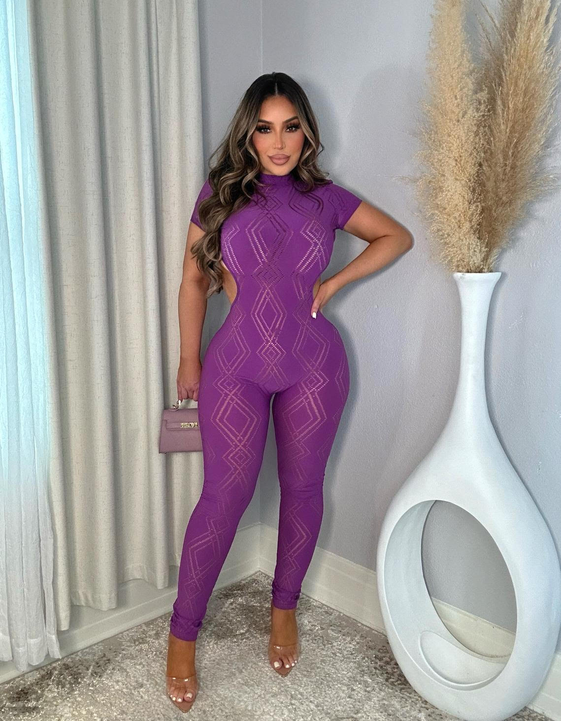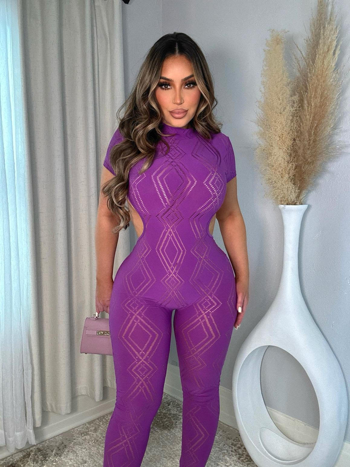 Get ready to steal the spotlight with the All Eyez On Me Jumper, a daring full-body suit designed to captivate. Available in bold black, fiery red, bestie blue, and vibrant purple, this one-piece features striking see-through geometric elements that playfully reveal skin while maintaining a sleek, edgy look.