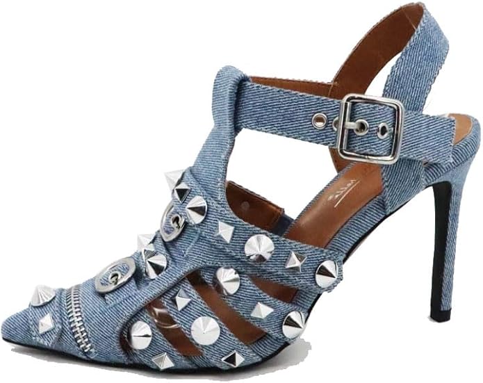 The Anne Michelle Neroli-18 pumps are the perfect fusion of edgy style and casual chic. Featuring a pointed toe adorned with bold spike studs and a sleek slingback strap, these heels make a fierce fashion statement. The midnight blue denim finish adds a laid-back, trendy vibe to the design, making them ideal for both day and night. With a cushioned insole and a comfortable stiletto heel, they offer both style and comfort. Pair them with jeans, skirts, or dresses for a versatile, standout look that’s sure to turn heads.