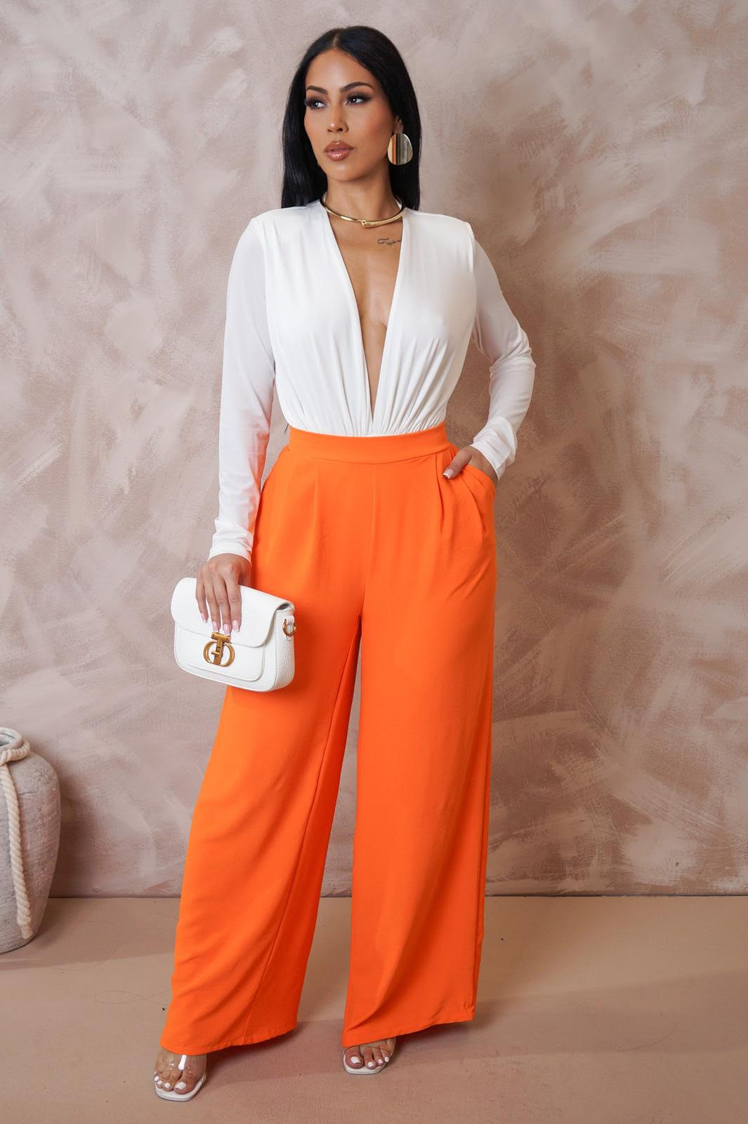 Available in vibrant orange and serene blue, these pants are the ultimate versatile addition to your wardrobe. The breathable fabric drapes beautifully, creating an airy silhouette that flatters every figure. Dress them up with a fitted top and heels for a sophisticated evening look or keep it casual with a stylish tee and sneakers. Whether you're heading to brunch or a beachside dinner, the Breezy Boss Pants will ensure you look effortlessly put together all day long.