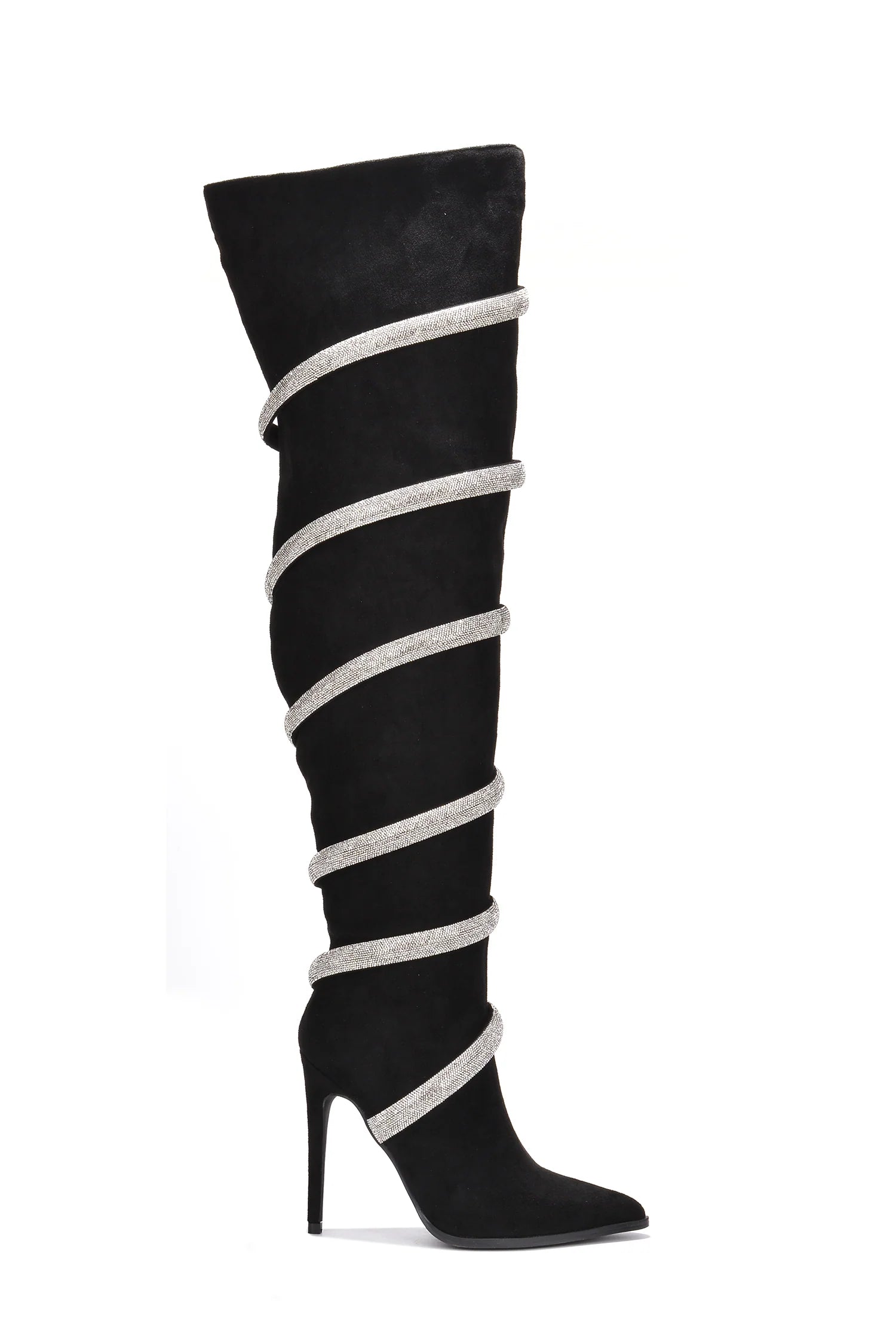 The Cape Robbin Rolly Boot in Black delivers a flawless, stunning look that will last all night. These thigh-high boots combine soft, luxurious suede with eye-catching rhinestone detailing, creating a perfect blend of modern elegance and bold glamour. Whether dressing up for a night out or making a statement at an event, these boots elevate any outfit with sophistication and shine.