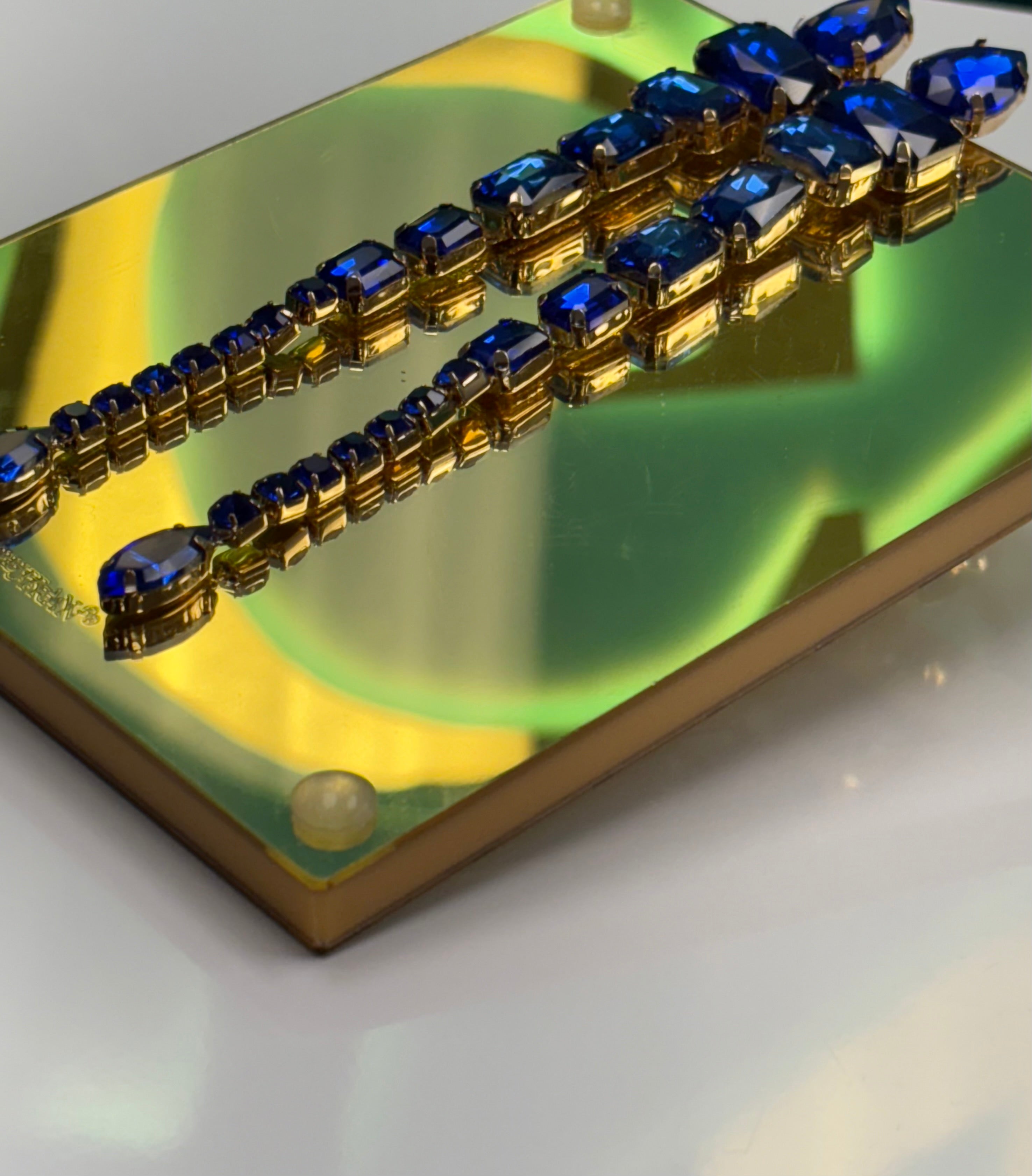 long drop dangle earring featuring a big crystal square gemstone. These earrings would typically have a bold design, with a square-shaped gemstone as the . The crystal would likely add sparkle and elegance to the piece, making it ideal for formal or evening occasions.