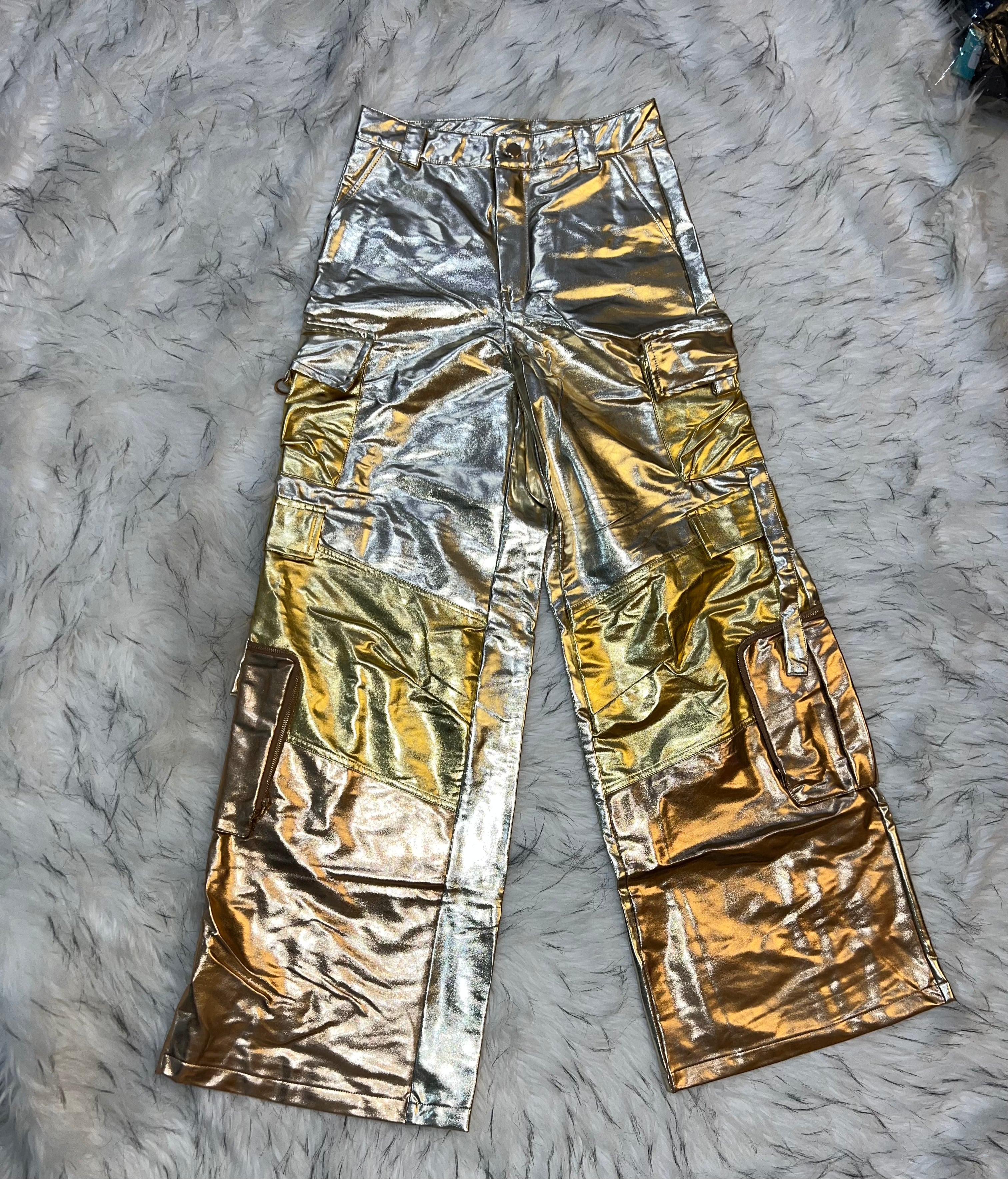 Step into the spotlight with our Gold Rush Cargo Pants, where comfort meets glamour in a striking blend of style. Crafted from luxurious metallic fabric, these cargo pants shimmer with every move, capturing the essence of urban chic. The relaxed fit and tapered ankles provide a contemporary silhouette that flatters all body types.