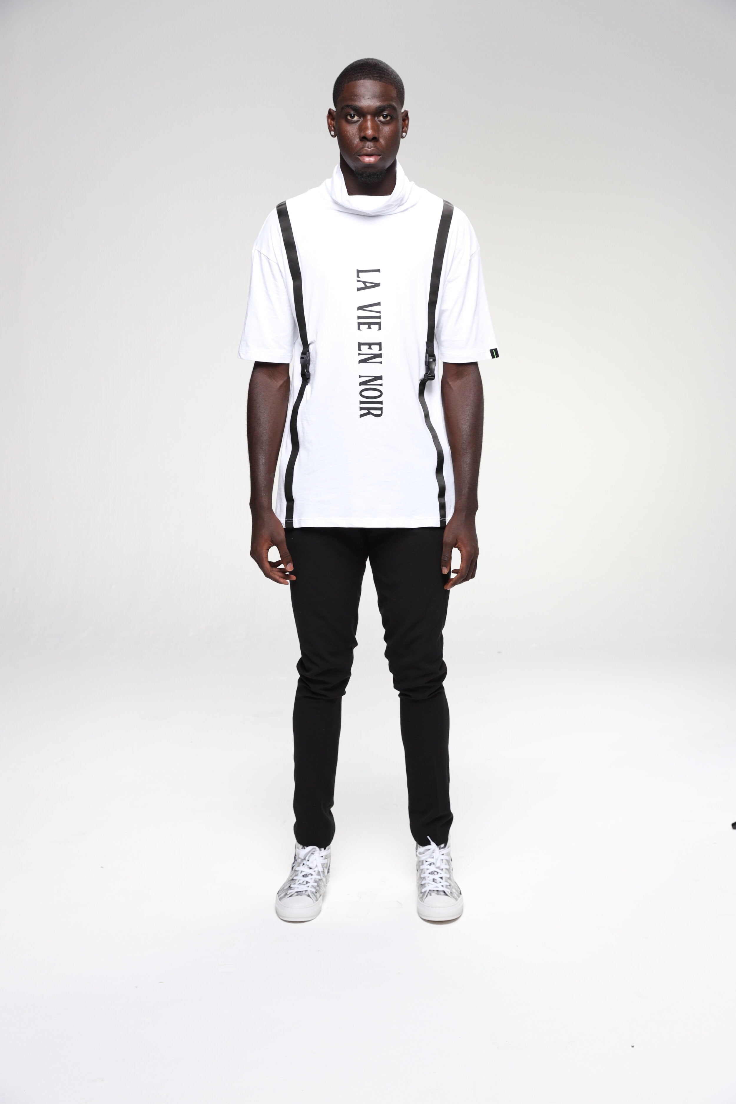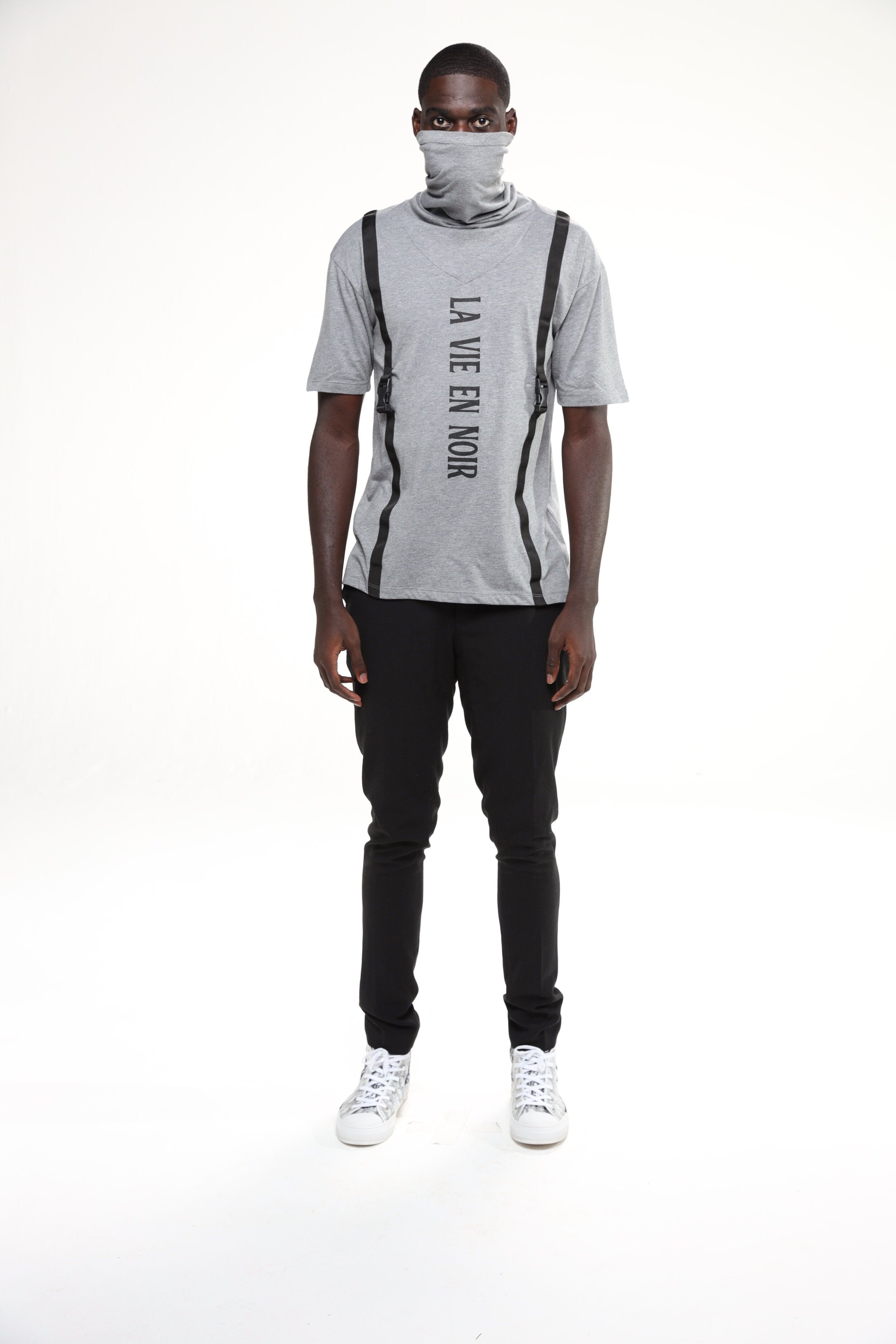 The La Vie En Noir Classic Men's Tee offers a sleek, minimalistic look with bold style. This short-sleeve, standard-fit tee features the "La Vie En Noir" logo running vertically down the center, adding a distinctive touch to a classic design. Available in timeless white or gray, it’s crafted from soft, breathable fabric for ultimate comfort. Whether paired with jeans or joggers, this tee is perfect for everyday wear, effortlessly blending simplicity with a modern edge. Elevate your casual wardrobe with the La Vie En Noir Classic Men's Tee.