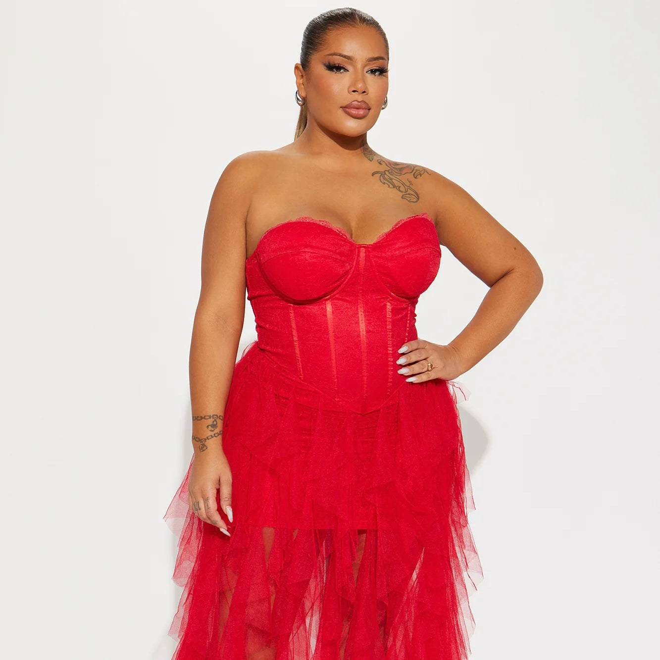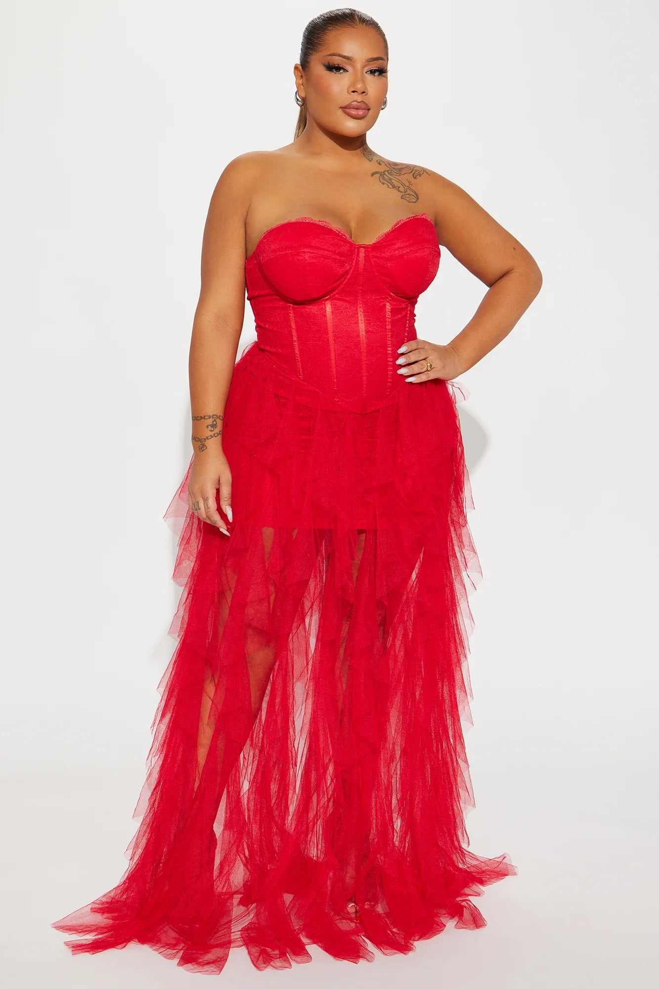 Ethereal meets seduction in this stunning corset tulle dress. Featuring a figure-hugging bodice that cinches the waist and cascades into layers of soft, flowing tulle, this dress is pure drama and allure. Sheer elegance with a sultry edge—perfect for making an unforgettable statement.