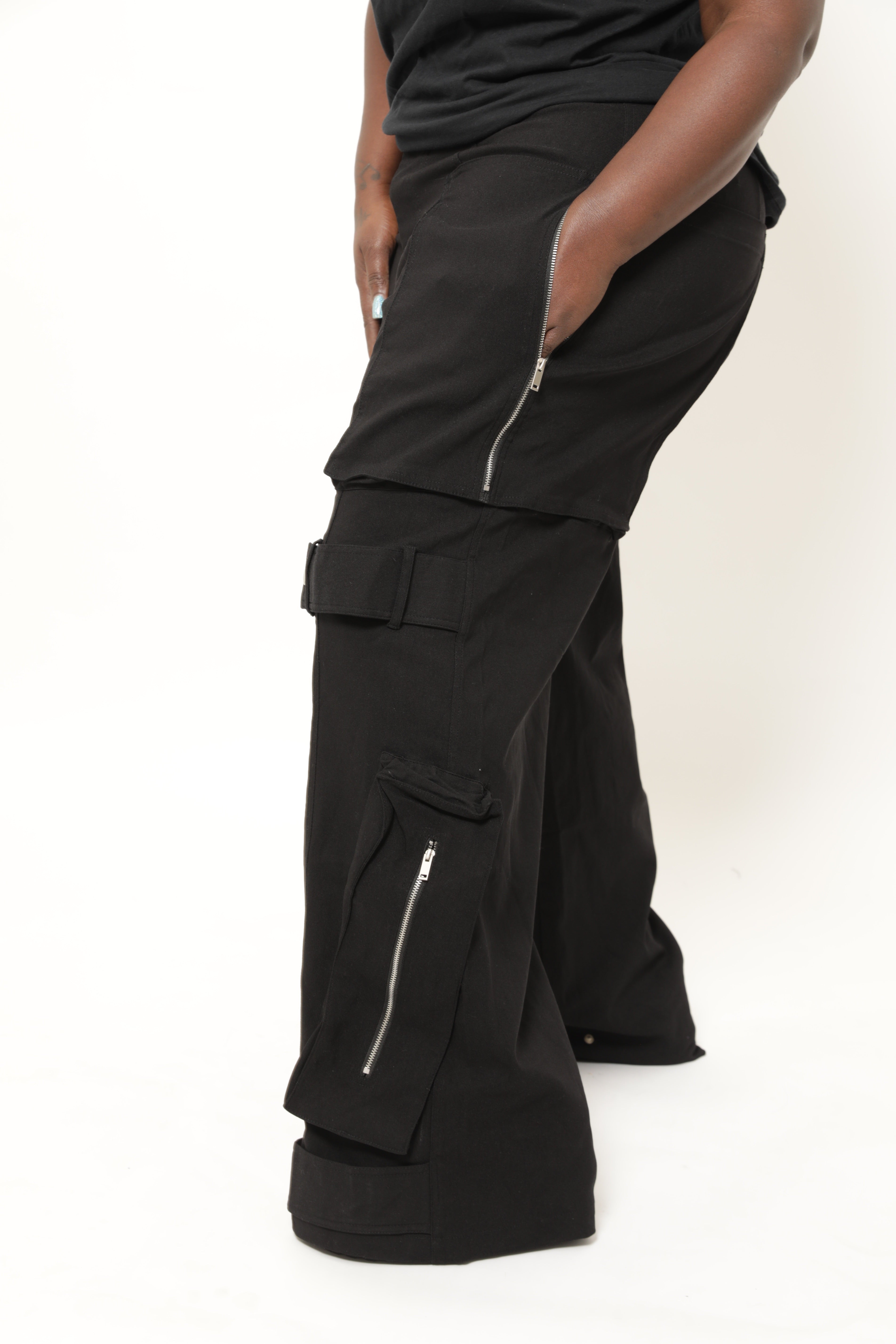 These black cargos are streetwear-ready with oversized flap pockets, bold zipper details, and a drawstring ankle for adjustable fit. Tough, versatile, and effortlessly cool.